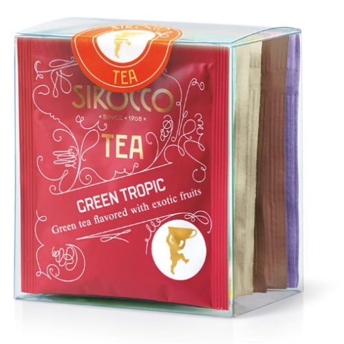 Diese 8er Kollektion besteht aus je zwei Teesachets der Bio-Tee-Sorten Green Tropic, Golden Assam, Almond Oolong und Black Vanilla und ist einem recyclebaren PET-Display verpackt.